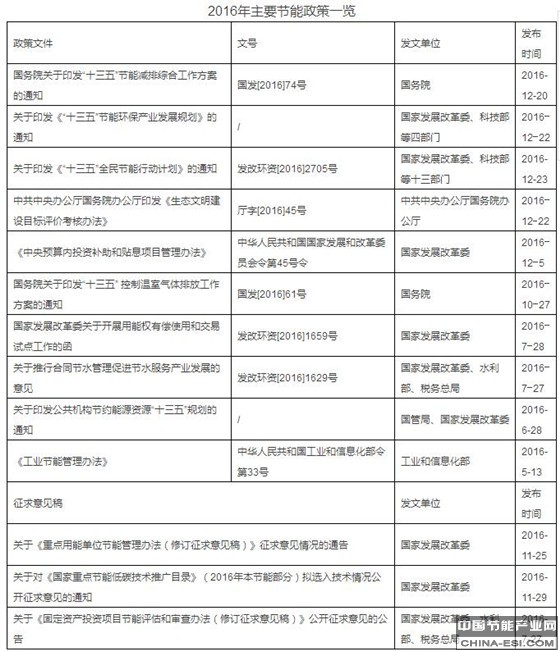 年终盘点:2016节能服务产业政策汇总