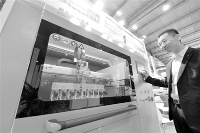 下图 参展商展示具有自主知识产权的超声喷涂技术。