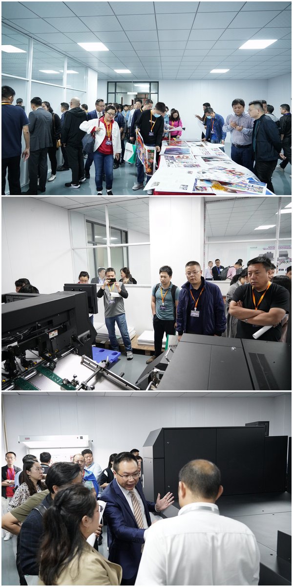主题演讲结束后,200余位嘉宾来到了杭州万星印务有限公司,共同参观这家年产值上亿的印刷企业,以及其最新引进的Jet Press 750S喷墨印刷机。