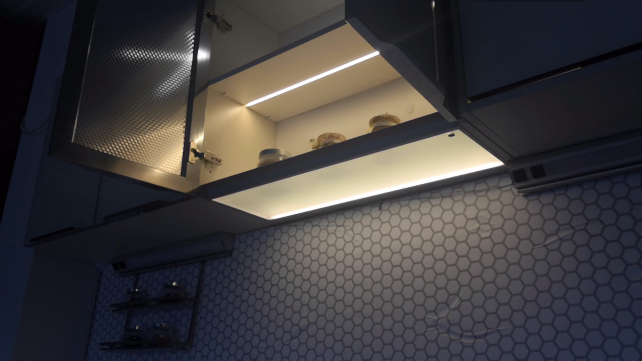 层板灯是一个可用于多个场合的多功能LED灯,灯光可向上以及向下照射,该灯可以安装于吊柜底板。倾斜的电路板使得灯光不会过于刺目,可适配手扫感应开关。