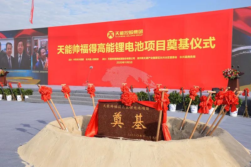 正值合作一周年之际,2020年11月5日,天能帅福得高能锂电池项目完成奠基仪式,这标志着天能培育壮大新能源产业再上一个新台阶。