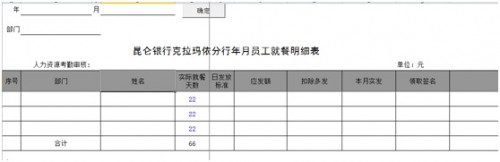 员工就餐明细由于员工病假、旷工、事假产假等情况,不发就餐票,手工处理废时废力,所以从考勤系统提取数据生成员工就餐明细,节省了人力,提高了效率和数据的准确性。