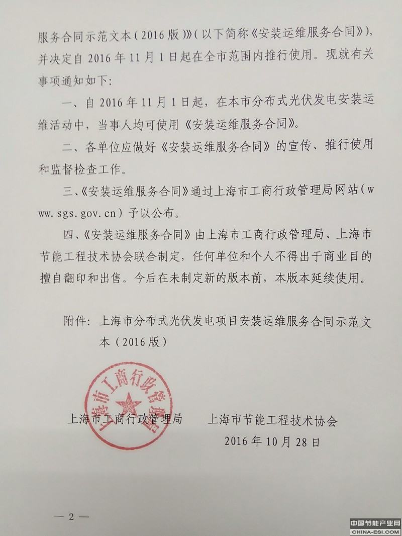 关于推行《上海市分布式光伏发电项目安装运维服务 合同示范文本》的通知