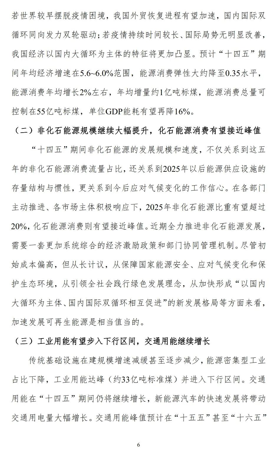 以下为《我国“十四五”能源需求预测与展望》报告节选:
