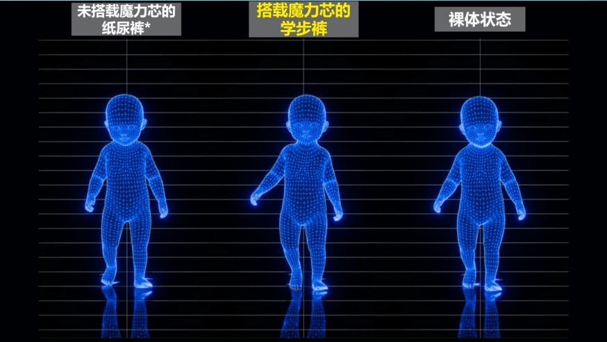 在“未来生活”版块,将为大家介绍花王基于婴幼儿行走数据建立的行走解析模型,带领大家具化地了解婴幼儿在不同情况下的行走状态,清晰地观察到搭载了“魔力吸收芯”的“妙而舒成长一步婴儿学步裤”对婴幼儿的行走基本不会造成影响的穿着效果。