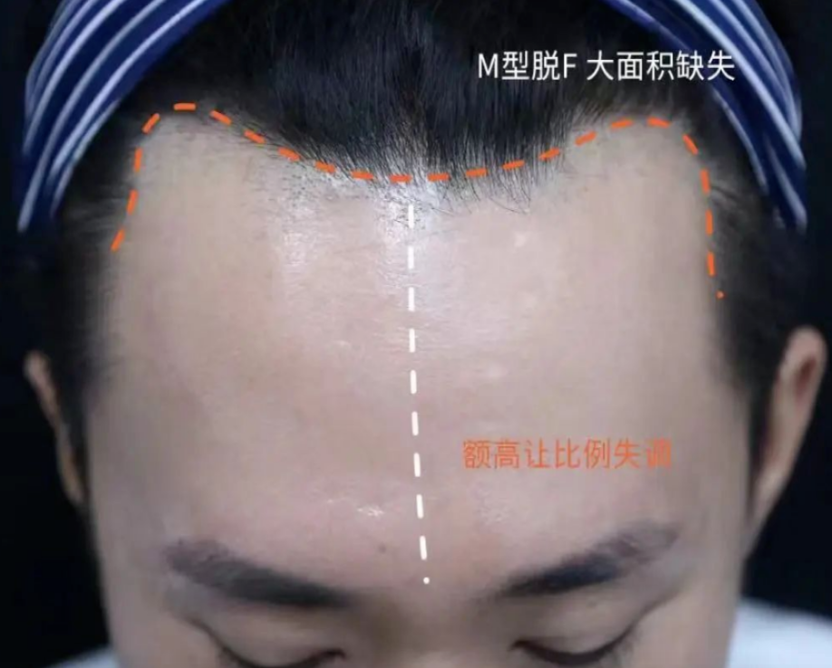 这种脱发的男性前额两侧头发会逐渐减少,发际线慢慢后移,呈现M型逐渐向头顶延伸,头顶部的毛发也可能减少和变细,甚至有的人前额和头顶部脱发同时进行。