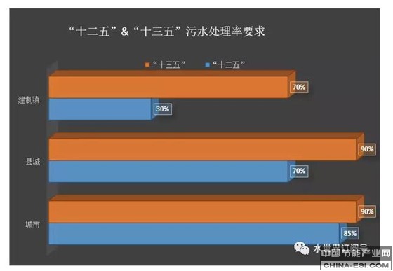 针对于此,在“十三五”开局之年,发改委印发的《“十三五”全国城镇污水处理及再生利用设施建设规划》(征求意见稿)给出主要目标:到2020年,全国所有设市城市、县城和建制镇具备污水收集能力,所有设市城市、县城及部分建制镇具备污水集中处理能力,实现城镇污水处理设施全覆盖。投资额总计近6000亿,其中以新建管网和新建污水处理设施投资额覆盖最多。