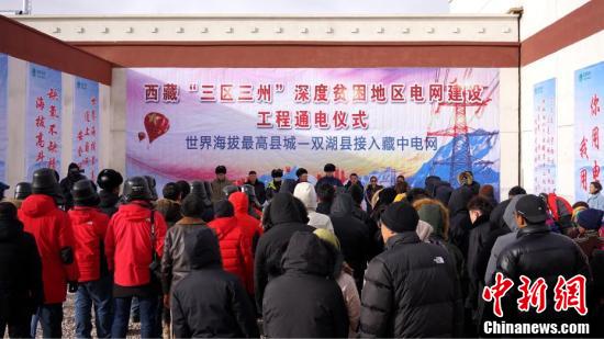 图为西藏那曲双湖县牧民参加通电仪式。