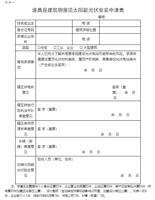 附件一:《遂昌县建筑物屋顶太阳能光伏安装申请表》