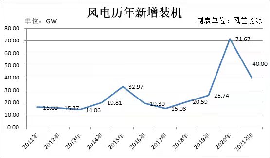 但是也有业内人士持不同意见。有相关从业人士预估,2021年市场吊装量在35-40GW。陆上风电同比下降30%-40%。